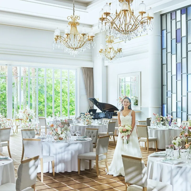 「ゲストをきちんともてなして感謝を伝えたい」という願いを叶えるパーティ会場「ガーデンヴィラ」はオープンキッチン付。天井高6mの開放的な空間で寛ぎの時間を。